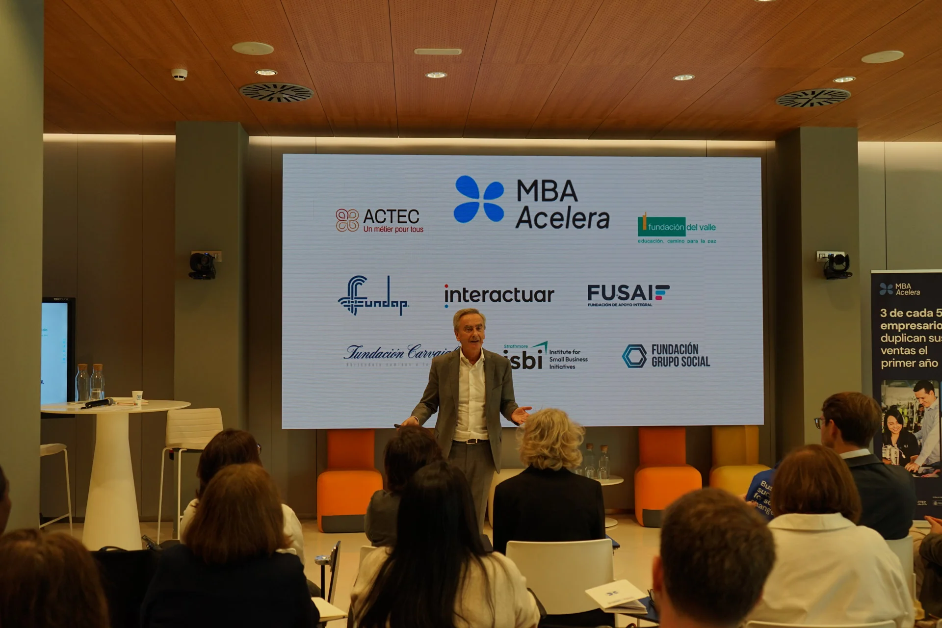 En la mesa redonda “Escuelas de Negocios: forjando líderes conscientes”, representantes de Interactuar, Fundación Carvajal, FUNDAP, FUSAI y Fundación Grupo Social compartieron cómo el MBA Acelera se ha convertido en un motor de transformación en territorios vulnerables: